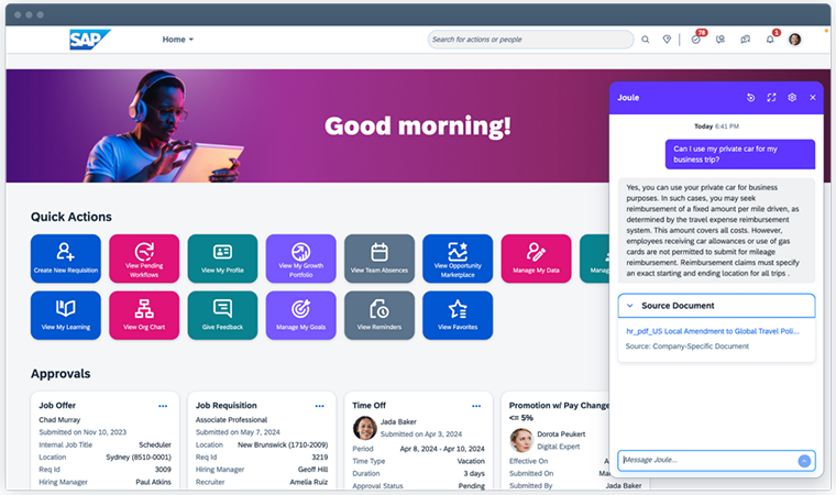استغل أحدث تقنيات الذكاء الاصطناعي من SAP’s ، لجذب وتطوير والاحتفاظ بأفضل المواهب. يمكنك إنشاء أوصاف وظيفية شاملة بسرعة وتبسيط إعداد المقابلات والوصول إلى معلومات حيوية لإكمال مهام الموارد البشرية بشكل أسرع وأذكى.